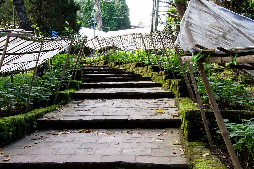 In the rainy season a lot of the flower beds have a “roof” mads of bamboo and plastic. This have 2 purposes both to protect against the heavy rain not smash the plants and to make sure that plants do not get to much water. A bamboo construction where the bamboo are put in the ground will only last about one year, before the bamboo is eaten by insects.