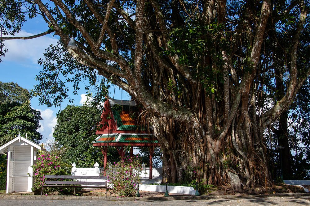 Above you first, you see the water reservoir there supply the palace and the gardens with water. Next, to the water reservoir, there is some shops where you can buy something to drink and some light snacks. The last picture is one of the royal residences. I think it is fair to call the building style “Lanna modern”, at least the roof it northern style, but otherwise a modern house.