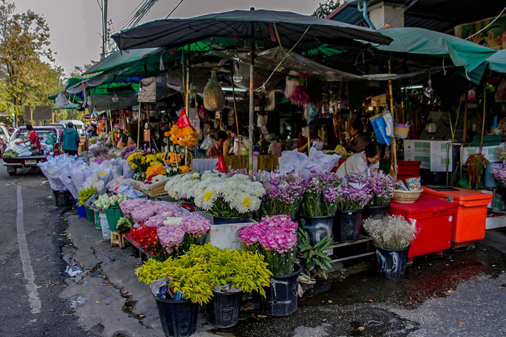 The bustling Warrorot Road cut flower market in Chiang Mai offers a captivating experience, brimming with a diverse selection of flowers grown in the mountains north of the city.
