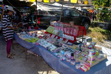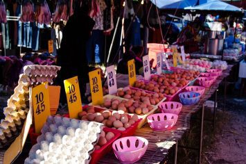 You will find the same goods as you normally find in a market in Thailand.