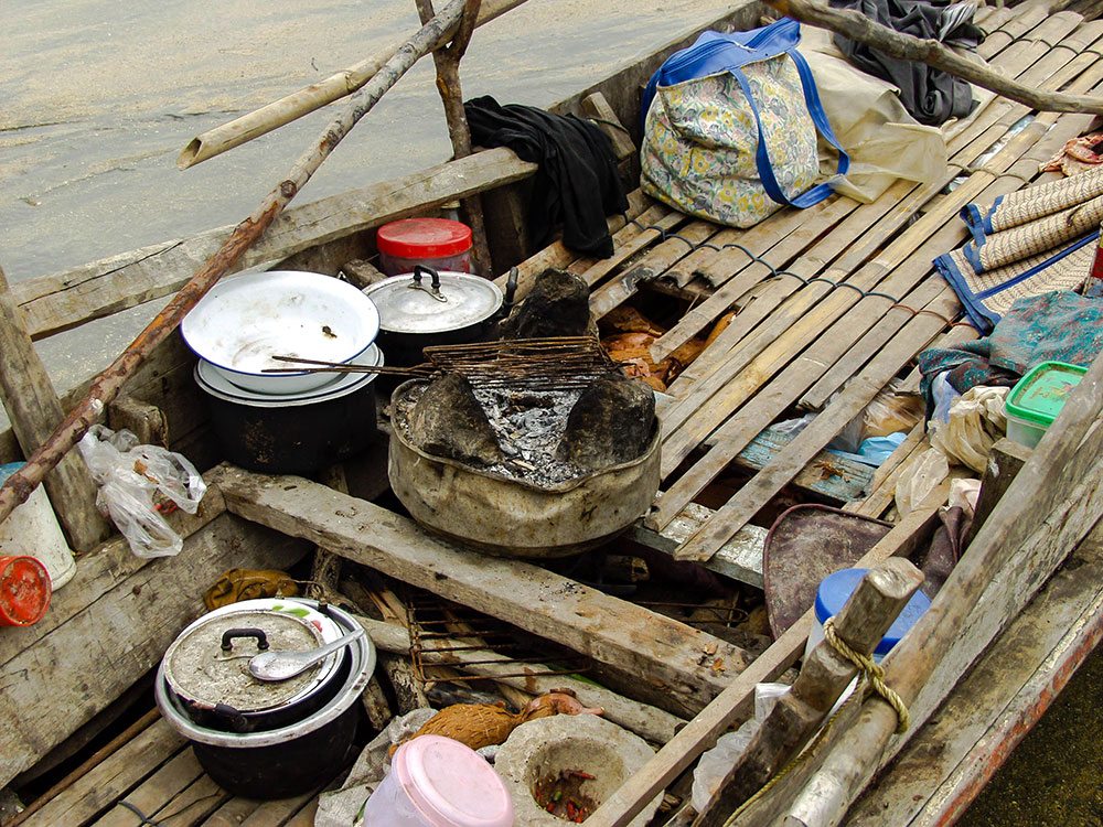 They did not have houses but stayed in their boats and paddle around Ko Chang and the other islands in the area. Almost the only things they need on a regular basis from civilization is rice and cooking oil the rest they get from nature.