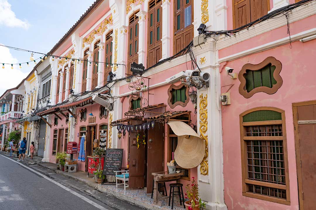 Phuket Old Town’s most striking feature is its beautifully decorated facades with tiles, shutters, and intricate carvings.