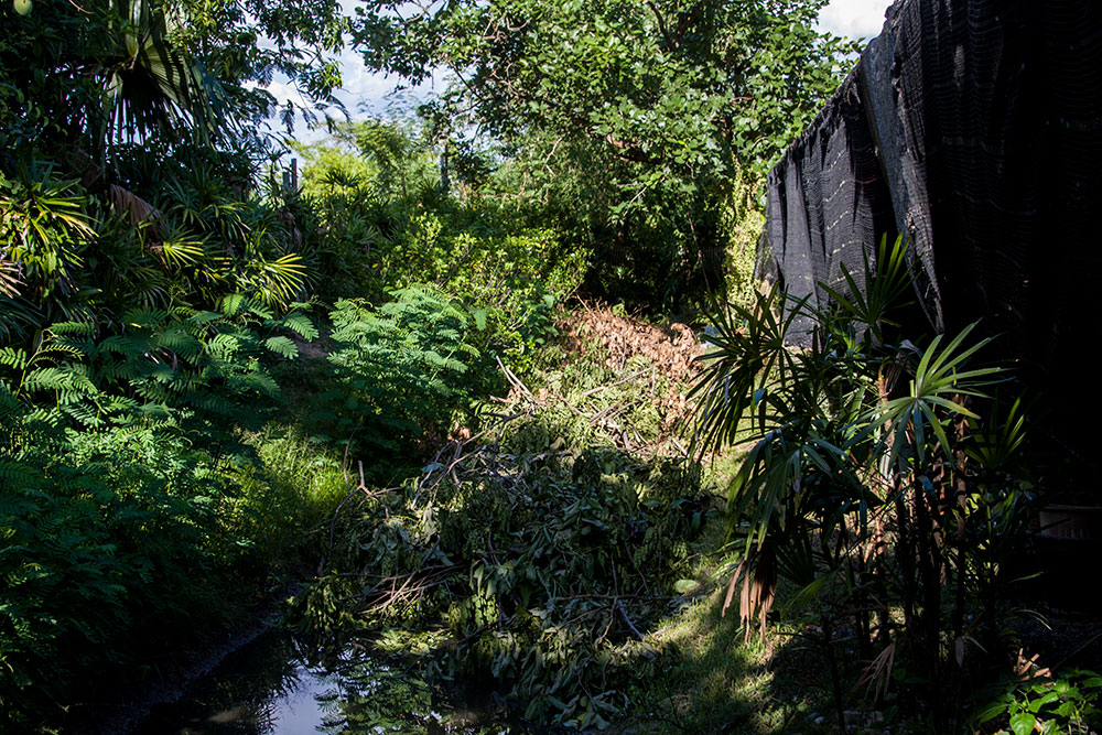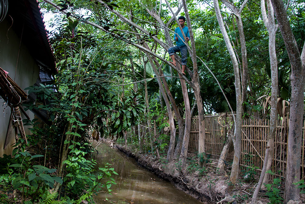 As the trees are over a drainage canal, and I am not a master tree climber, also I do not have the tools for cutting trees.