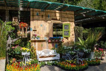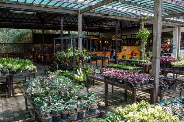 On top of the mountain, you find a restaurant, a souvenir shop, a flower shop, and all the greenhouses.