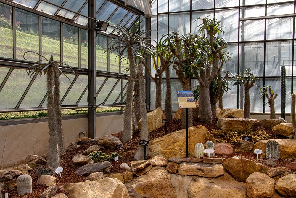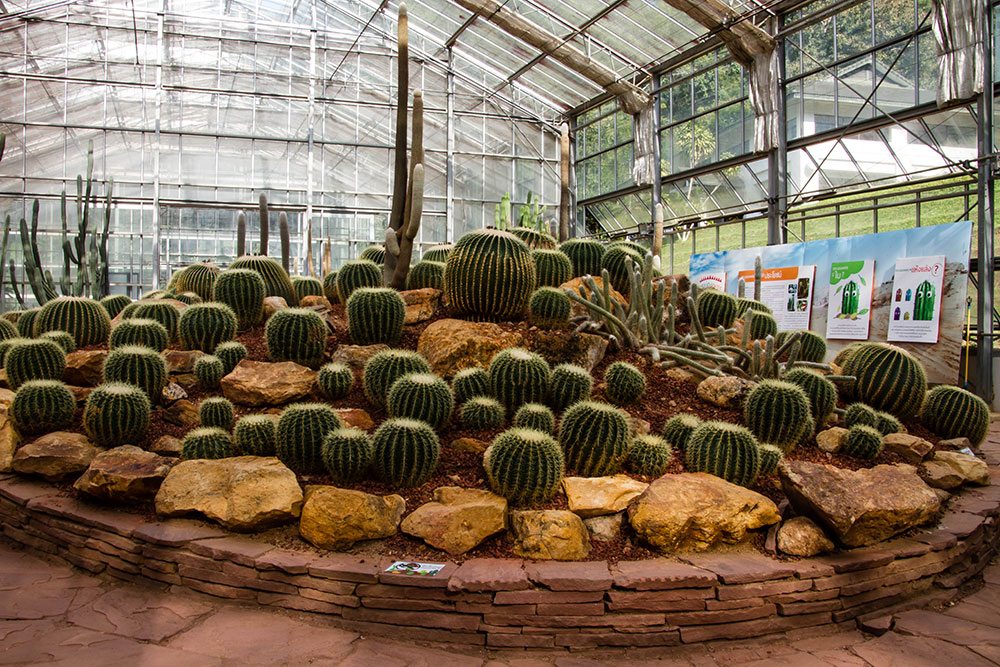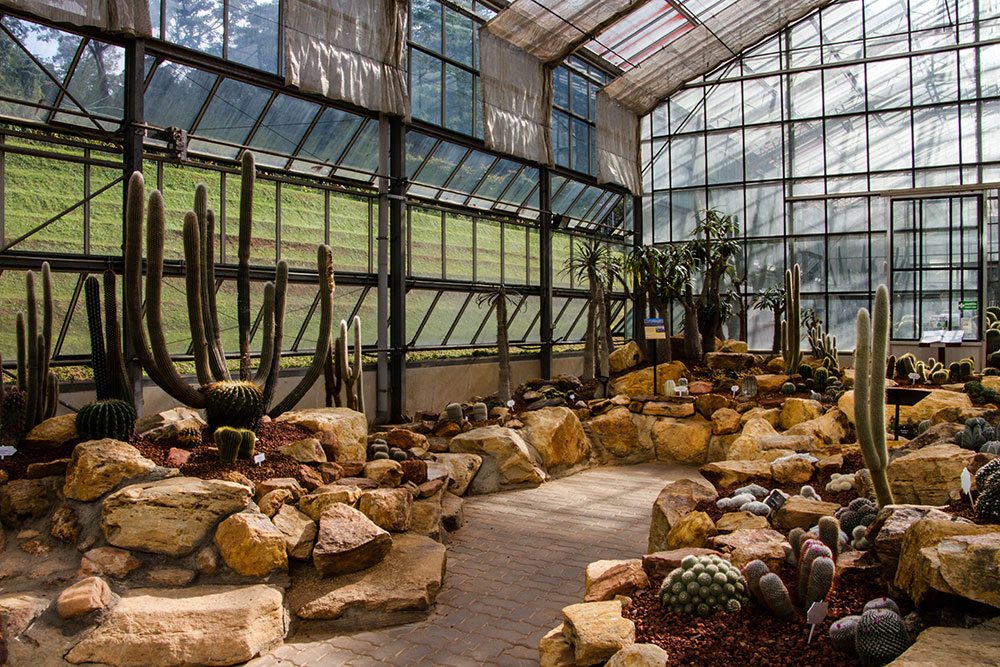 Each of the greenhouses is dedicated to one kind of plants like there is, for example, one for orchids and ferns, one for cactus, one for bromeliads, you also find a big greenhouse there is made into a jungle house. I think there are about 6 or 8 greenhouses all together.