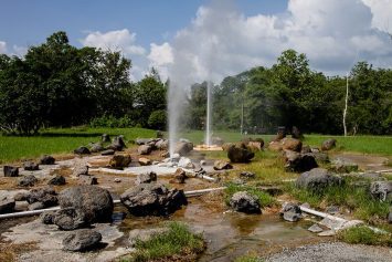 The area has been landscaped as a park. The main attraction is two fountains of hot water there is an area where there is made canals and ponds where you also will find small shops sell food and beverage.