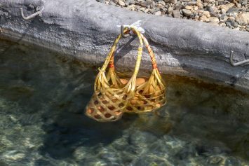 In addition to managing the water flow the small canals, are also used as a gimmick where you can boil an egg. You can buy the egg in the shops and they come in a little bamboo basket, and there are hooks at the side of the canals, to hang the baskets on.
