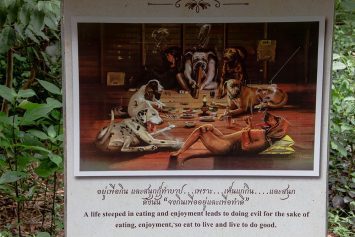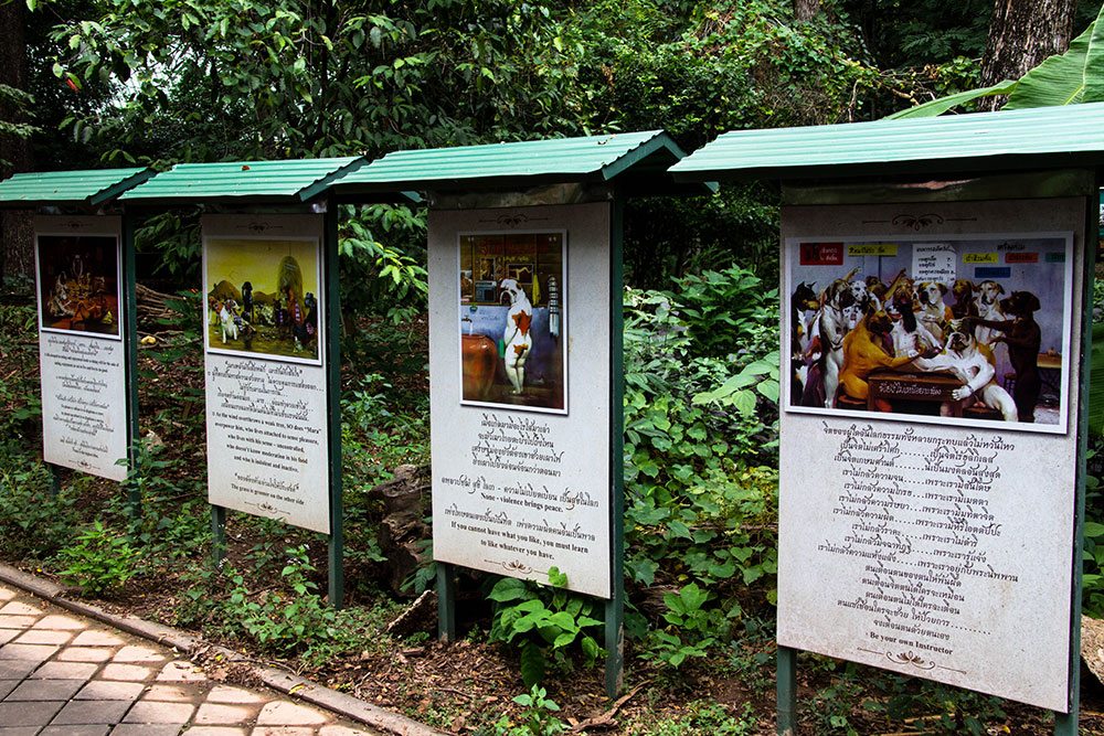 Around the grounds of the temple, both in the trees and other places, there is as in many other temples a lot of signs with Buddhist sayings both in Thai and English.